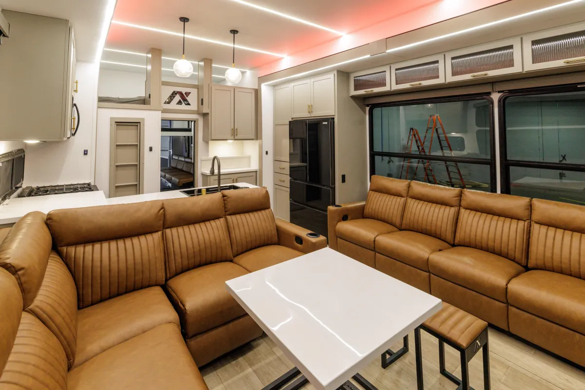 Traveling with a big crew? This unit features 12 reclining leather chairs to bring you the most comfort possible. Because here at Axiom, we understand that you’re not just RVing, you’re living.