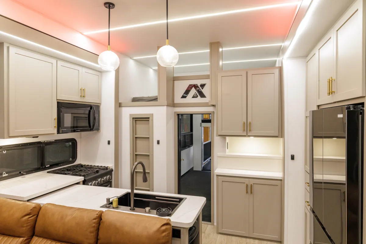 Inside, Vendetta raises the bar with the tallest interior ceilings in its class, creating an open, residential feel throughout. Built to meet the demands of both thrill-seeking toy hauler owners and large families. Vendetta brings together rugged capability, refined comfort, and expansive storage in one elite package.